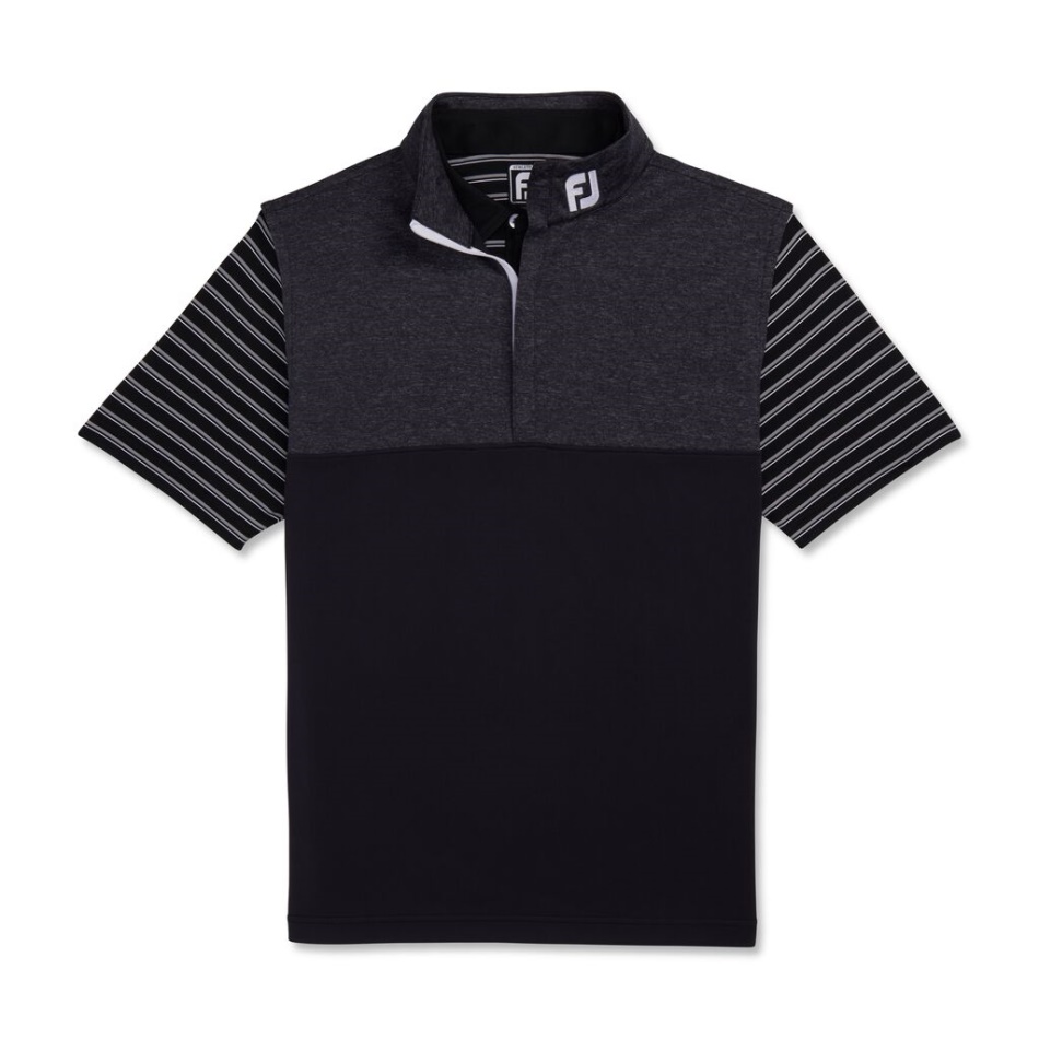 Colete De Meio Zíper Preto Footjoy Pt Heather Yoke - Gola Fj Tour