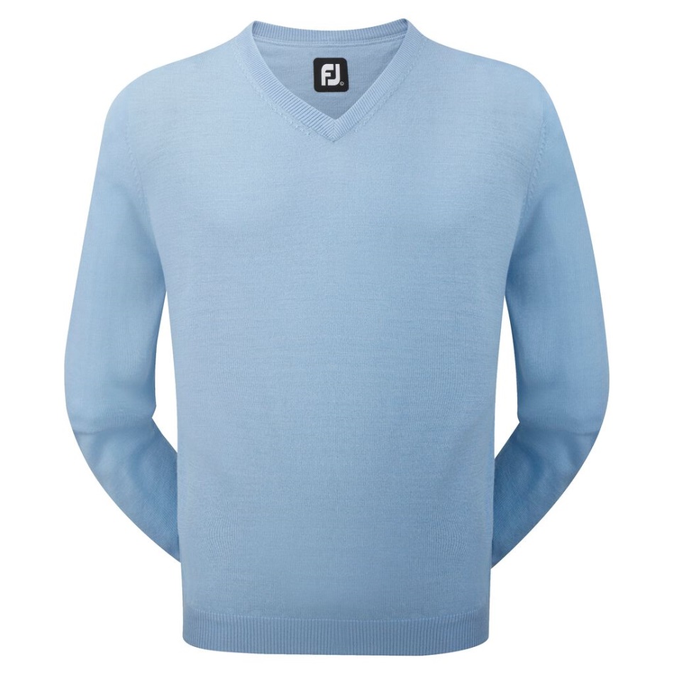 Pulôver De Lã De Carneiro Com Decote Em V Footjoy Pt Azul Claro