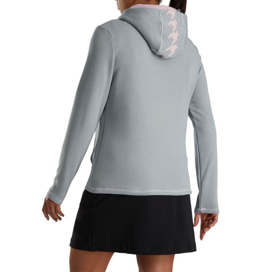 Moletom Com Capuz Houndstooth Rosa Cinza Footjoy Pt Meio Zíper Feminino