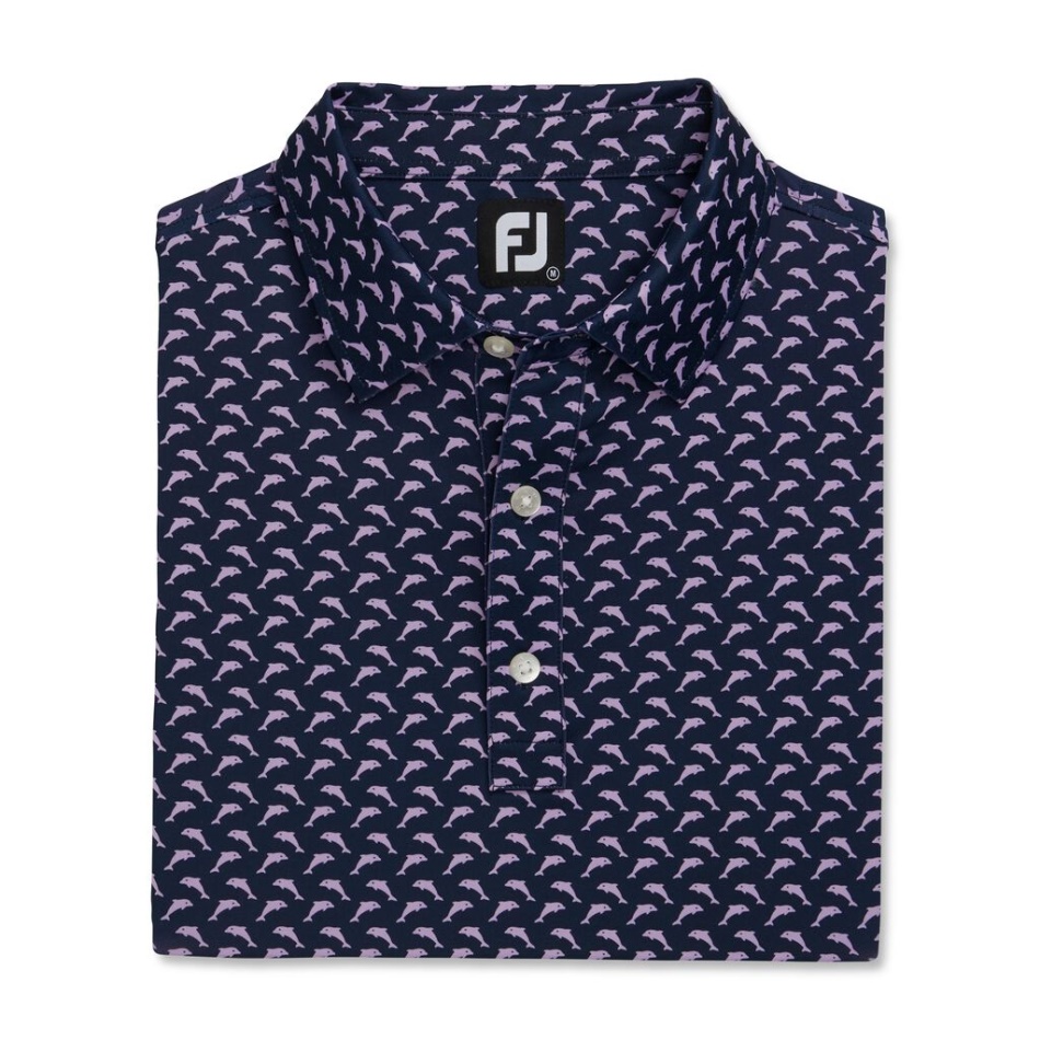 Marinho-lavanda Footjoy Pt Ajuste Atlético Lisle Saltando Golfinhos Imprimir Gola Auto