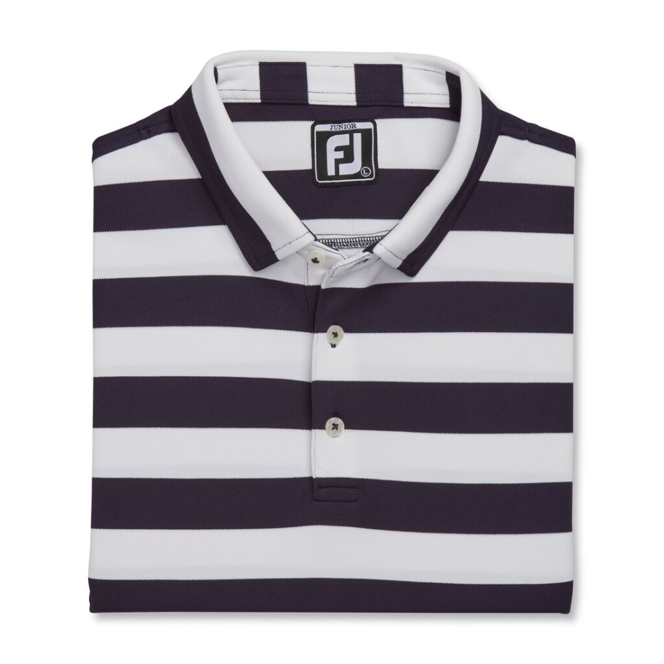 Footjoy Pt Piquê Júnior Com Listras De Rugby Branco Marinho